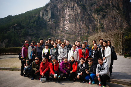 圖為第一批參加人員在瓊臺仙谷合影 上午9點30分,三個所共計40多位員工在集團公司下屬的旅行社導游小孫的帶領下,從臨海結集出發,去往“人與自然和合、人與人和合、人與社會和合”的“和合圣地”——天臺,游覽國清寺和瓊臺仙谷?!昂秃衔幕笔翘炫_山文化的精華,也是中華傳統文化的核心與精髓。近年來,臺州市大力推進“和合文化”品牌建設,全力打造“和合圣地”,賦予“和合文化”新的生命力。大家深處由秀美的自然山水和內涵極豐富的佛道文化構成的天臺山美景中,享受著自在與輕松,整個活動過程更洋溢著“健康、和諧、友好、愉悅”的濃厚氛圍。 此次“一日游”活動,不僅激發了女員工們積極向上、自強不息的精神,也促進了同事之間的感情,增強了隊伍的凝聚力和戰斗力,從而營造和諧美好的氛圍。 鄭瑛芝
