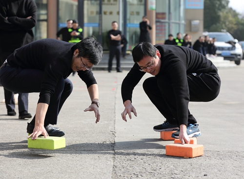 本次活動分團隊賽和個人單項賽,團隊賽包括“二龍戲珠”“背靠背”“集體跳繩”“拔河”4個項目;個人單項賽由“摸石過河”“夾乒乓球”“跳繩”“定點投籃”“俯臥撐”“仰臥起坐”6個項目組成。每個賽場氣氛活躍,加油聲、喝彩聲此起彼伏。其中拔河比賽最為熱鬧,參賽隊員個個緊握長繩,蓄勢待發,隨著裁判的一聲哨響,他們在“一二三”的口令聲中卯足勁、齊發力,場邊助威聲響成一片。在“摸石過河”比賽中,身體的任何部位不得直接觸碰除河石之外的支撐物,該項目著重在手腳配合,在“河中”巧妙地移動石頭,直至到達終點。
