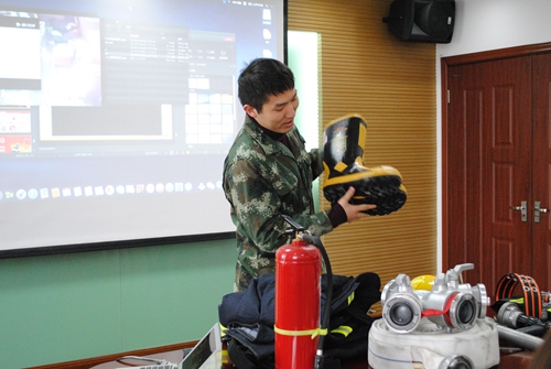 圖為消防員裝備介紹 此次專題講座進(jìn)一步提高了大家對(duì)消防安全的重視,加強(qiáng)了防范意識(shí),注意用火、用電安全,防止事故的發(fā)生,也深刻認(rèn)識(shí)到了“生命至上,安全第一”的重要性,真正做到“防患于未然”。 楊雅芬