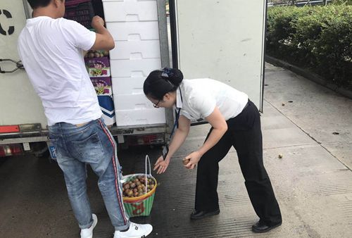 圖為工作人員幫司機(jī)撿李子 一個個李子雖小,卻很調(diào)皮。有的滾到了欄桿前,有的溜到了車道的狹縫里,有的甚至逃到了車底下,收費(fèi)員鄭維見狀,立馬彎腰撿李子,又迅速跑到欄桿前,很靈活地抓起了好幾個李子。狹縫里都是沖洗車道留下來的臟水,鄭維又毫不猶豫地將手伸向臟水里撿李子,再拿到水龍頭前沖洗一番后放回到司機(jī)的籃子里。一來一回好幾趟,原本平日里就怕熱的鄭維早已滿身大汗,此時她卻全然不顧。