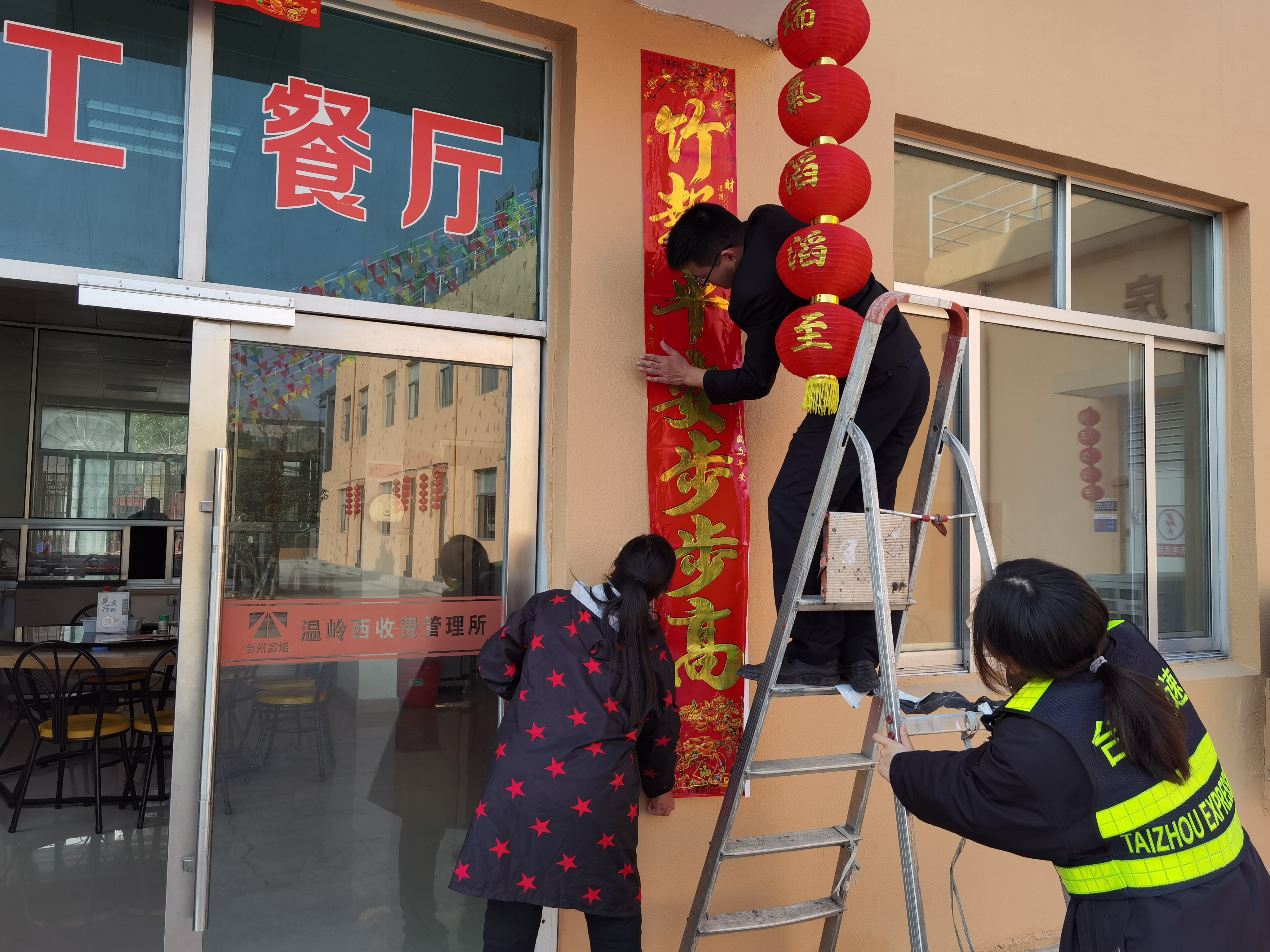“爆竹聲中一歲除,春風(fēng)送暖入屠蘇。千門萬戶曈曈日,總把新桃換舊符。”時值2021年春節(jié)來臨之際,為營造歡樂喜慶、祥和溫馨的節(jié)日氛圍,溫嶺西收費所組織職工對站區(qū)進行布置,掛燈籠、貼對聯(lián),歡歡喜喜迎新年。