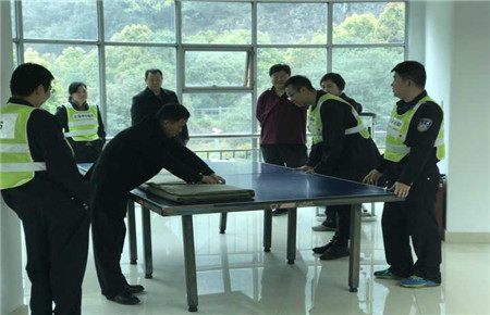 圖為裁判員認真打分 黃土嶺隧道所則組織開展了消防水帶連接使用鋪設(shè)訓練。 此次訓練以計時比賽的形式進行,執(zhí)勤隊員分組展開模擬演練,每組兩次機會,取平均分記入考核。參練人員個個激情高漲,積極投入,演習場面熱鬧非凡。每組隊員在第一輪比賽后都抓緊互相探討動作要領(lǐng)和水帶掐口的連接方法等,確保第二局能夠更準確、更迅速地完成連接。