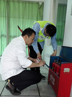 圖為檢查現(xiàn)場 該所副所長應(yīng)錦清帶領(lǐng)隊(duì)員仔細(xì)檢查了南北配電房的機(jī)電設(shè)施,隨后對管理房的干粉滅火器、隧道內(nèi)的泡沫滅火器,配電房、中控室的二氧化碳滅火器進(jìn)行逐一檢查,查看每個(gè)滅火器的壓力值、出氣管有無彎折、堵塞、損傷,壓把和閥體等金屬件有無變形和銹蝕,是否還在使用年限之內(nèi)等等,并做好相應(yīng)的檢查記錄。 陳智慧