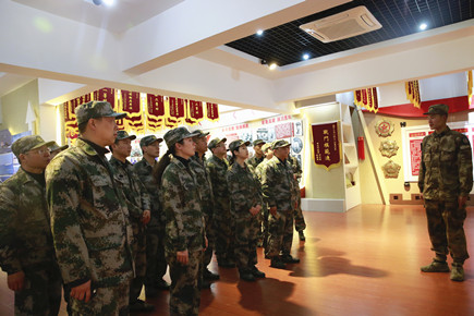 圖為黨員干部在參觀展覽 大家在“硬骨頭六連”官兵的指引下參觀了連隊(duì)廣場、車場、展覽館、將帥廳等,觀看戰(zhàn)場模擬演練紀(jì)錄片,聽指導(dǎo)員講專題黨課,深入了解該連的組建誕生、浴血戰(zhàn)斗歷程,感受豐功偉績下的“硬骨頭精神”。
