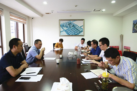 圖為集團(tuán)副董事長(zhǎng)、總經(jīng)理張建平認(rèn)真聽(tīng)取相關(guān)人員下階段工作安排匯報(bào)