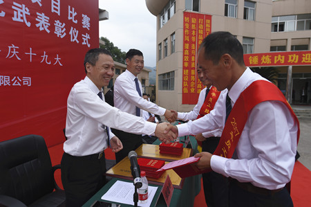圖為集團領(lǐng)導(dǎo)與獲獎人員握手
