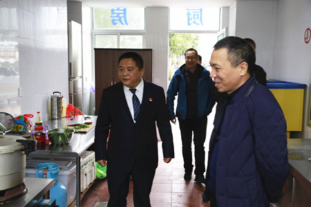 圖為集團副董事長、總經(jīng)理張建平檢查臺州南收費所食堂