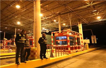 當晚20時許,一切整裝就緒,分流正式開始。瞬間,原來還空曠的臨海南收費廣場車輛絡繹不絕,轟鳴聲不絕于耳。車流各收費所班子成員全數在崗管控現場,當班班組一如既往地沉穩應對,微笑接卡、唱收唱付、禮貌迎送,行政班人員輪流值班,時刻準備旁站和補崗。