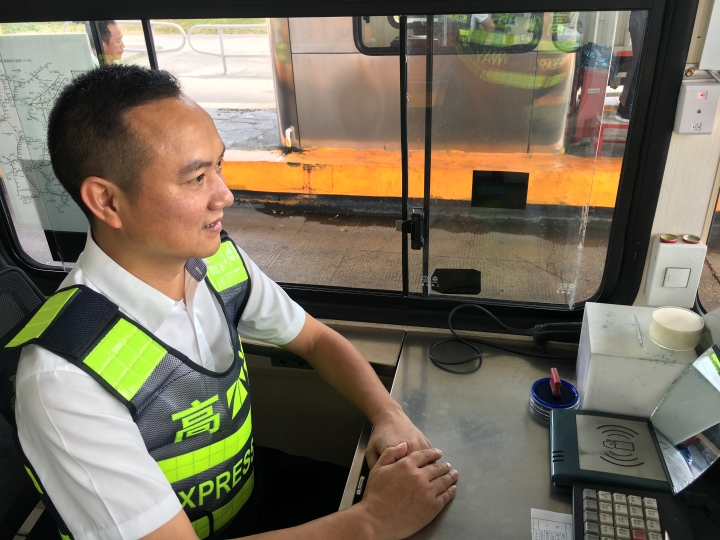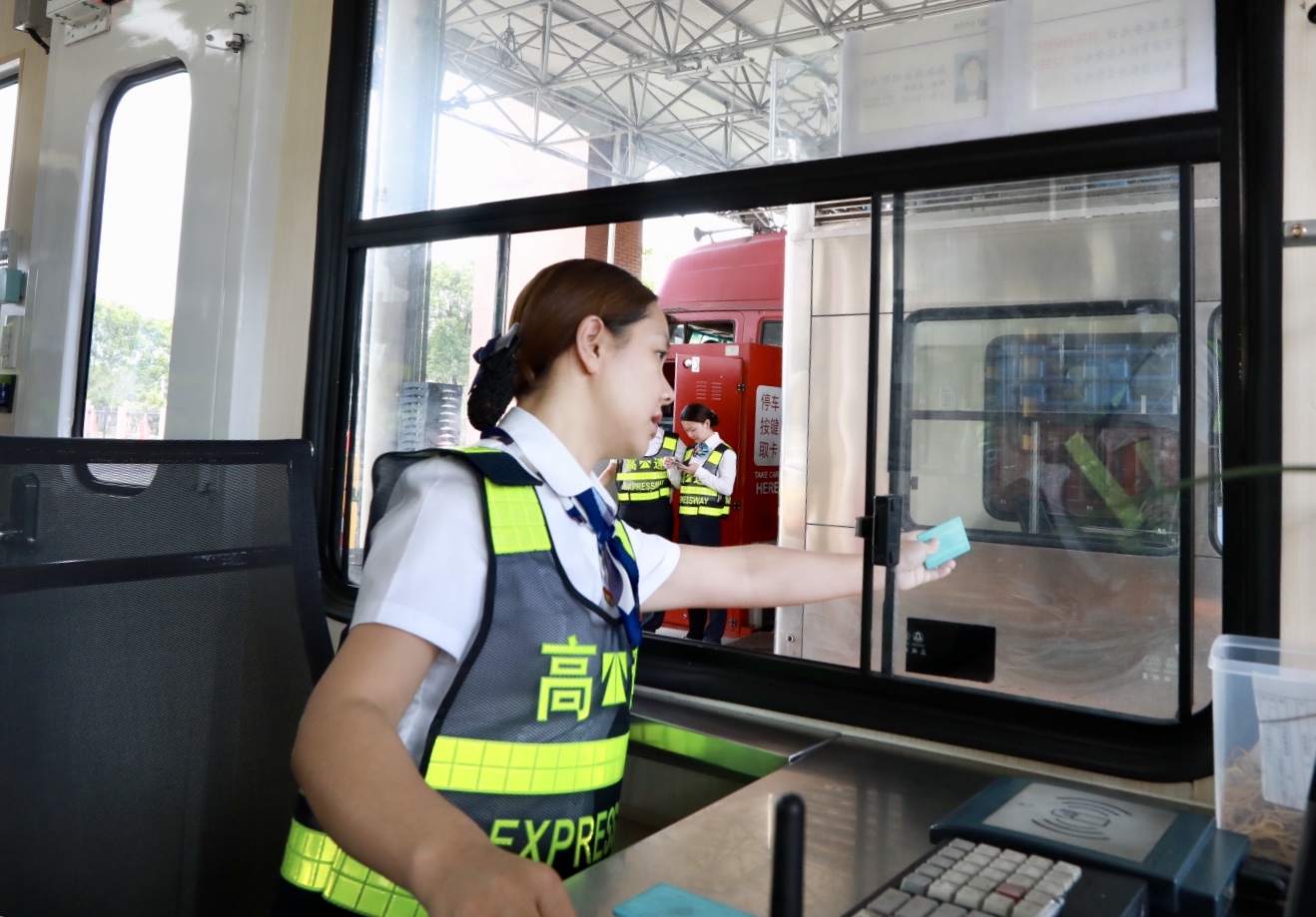 而在對面發(fā)卡的安全總監(jiān)項(xiàng)同富正襟危坐,等待著車子的駛?cè)耄?/span>“記住動作就忘記微笑,笑起來又忘記要說什么......真有點(diǎn)手忙腳亂的,做好收費(fèi)員,不容易。”