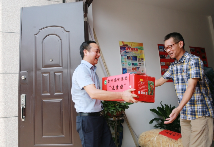 沁人心脾|臺州高速集團開展“夏日送清涼”活動 7月15日上午,臺州高速集團開展“夏日送清涼”活動。集團黨委書記、董事長、總經理陳文波,副總經理陳保衛、羅小將、章海峰、工會主席項同富兵分兩路,帶領送清涼慰問組同志,深入高速交警、路政、匯通養護公司、各收費所、隧道所、中心、子公司等單位看望慰問值守人員并送去慰問品,向冒著高溫酷暑辛勤工作的工作人員表示敬意和慰問。感謝廣大員工在高溫下堅守崗位、辛勤勞動,集團領導親手送上防暑降溫的紅棗、綠豆、蓮子、飲料等物資,為在炎炎夏日中堅持工作的一線廣大人員送去了絲絲清涼。