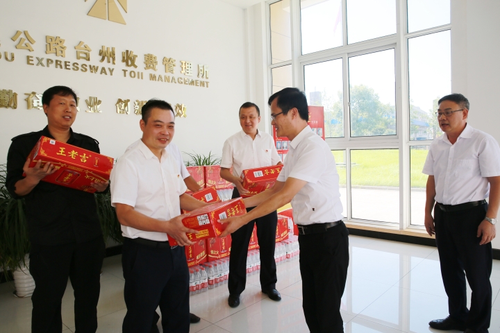 市交投集團(tuán)總經(jīng)理金寶敏到臺(tái)州高速沿線收費(fèi)所送清涼 8月13日上午,臺(tái)州交投集團(tuán)黨委副書記、副董事長(zhǎng)、總經(jīng)理金寶敏一行到臺(tái)州高速沿線收費(fèi)所送清涼,看望慰問(wèn)高溫天堅(jiān)守崗位的一線工作人員。臺(tái)州交投集團(tuán)黨委委員、副總經(jīng)理,臺(tái)州高速集團(tuán)黨委書記、董事長(zhǎng)、總經(jīng)理陳文波,臺(tái)州高速集團(tuán)副總經(jīng)理章海峰陪同慰問(wèn)。