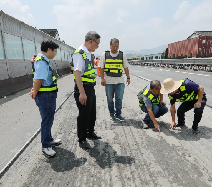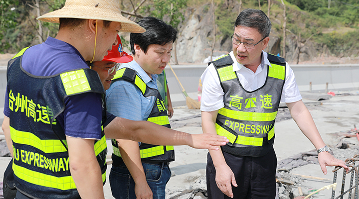 上午,臺州高速集團黨委書記、董事長、總經(jīng)理陳文波,公司黨委委員、總工程師江輝,以及工程部相關(guān)人員一起來到公司所轄路段,檢查施工進展情況。