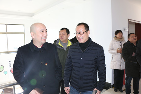 圖為集團副總經(jīng)理章海峰帶領(lǐng)考察組參觀上墻黨建文化