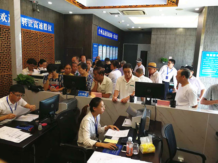 9月11日早上8點未到,溫嶺、仙居、椒江等其它收購點已有不少股東排隊等候辦理股權轉讓手續。自9月8日臺州高速股權收購工作正式啟動以來,各個收購點現場“生意”火爆。工作人員主動提前上班,接待各位股東。 “這么早就在上班了,辛苦了。”有的股東會親切地跟工作人員打招呼。
