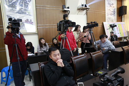 圖為各大媒體記者嚴(yán)陣以待