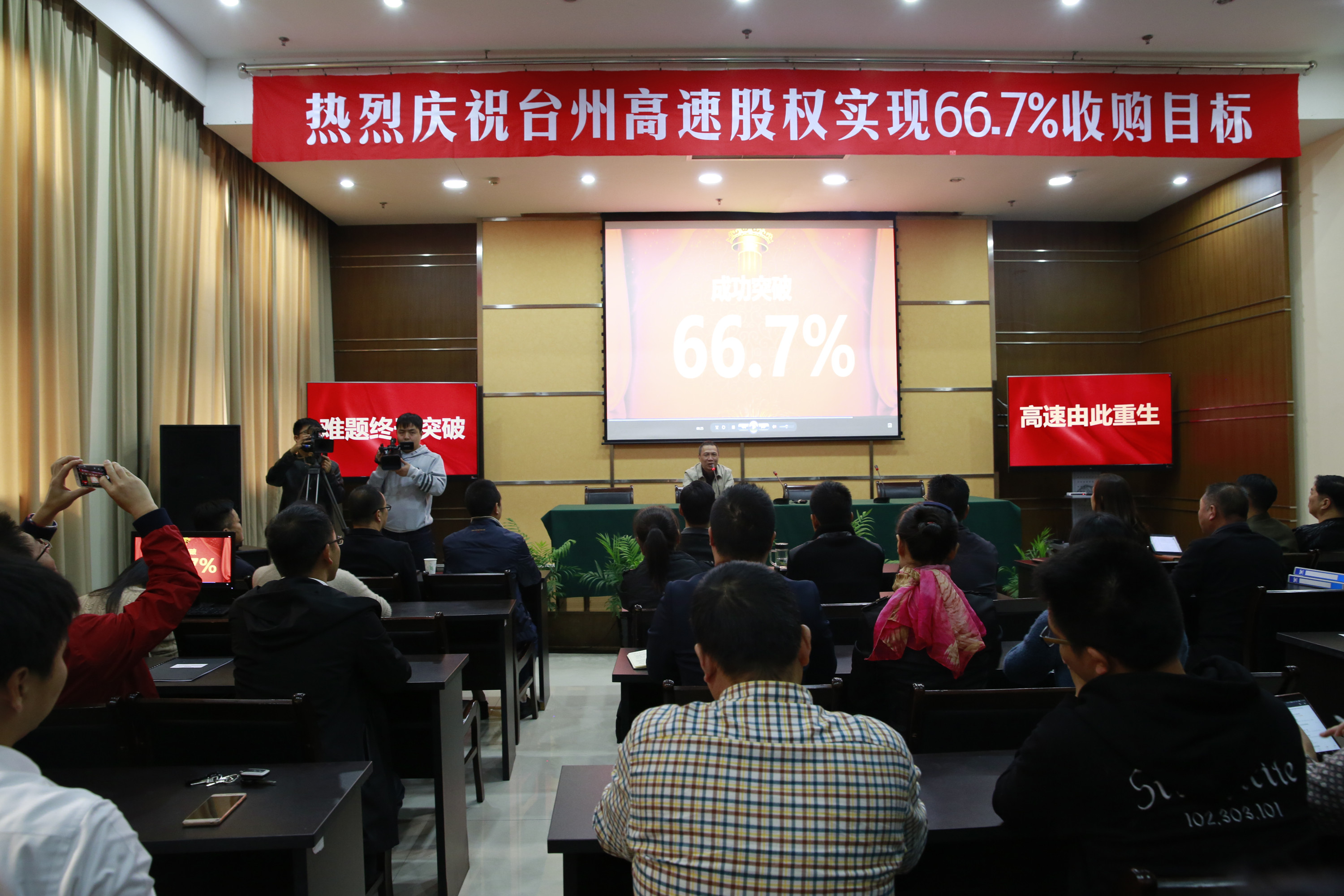 臺州高速股權(quán)集中和優(yōu)化工作領(lǐng)導(dǎo)小組辦公室主任、臺州高速集團(tuán)總經(jīng)理張建平鄭重地宣布:“至此,全市共完成臺州高速股權(quán)轉(zhuǎn)讓6947萬股,臺州市屬國企及黃巖財務(wù)開發(fā)公司合計持股數(shù)1.441億股,完成了66.7%的預(yù)定收購目標(biāo)。”