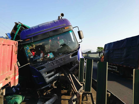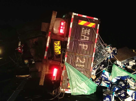 施救中心人員凌晨處理多輛貨車(chē)碰撞事故 |