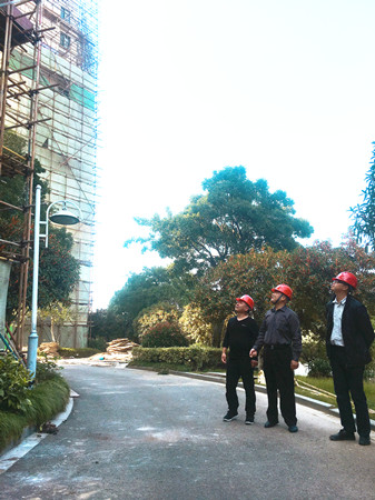 公司監察室人員到溫嶺水韻新村墻體脫落修復工程現場督查