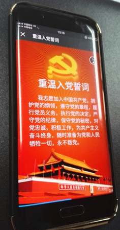 “凝視黨旗,我把奉獻刻心里;舉起右拳,我把責任刻心里;宣讀誓言見證我對黨的忠誠;這崇高的選擇是我終身的信仰----”點開微信圖文信息,伴隨著低沉渾厚的男聲詩朗誦,接收到信息的黨員們不由肅然起敬,仿佛置身當年黨旗下宣誓的莊嚴時刻。