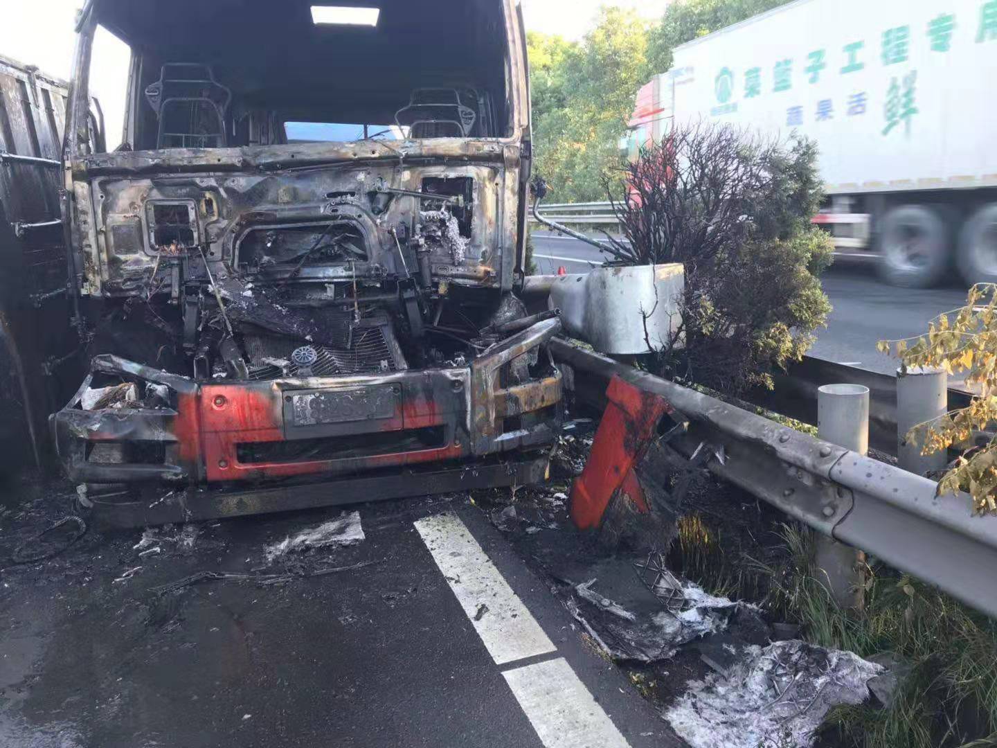 9月20日凌晨5點(diǎn),溫向1956距離臺(tái)州南不到1公里的地方,一輛大貨車(chē)追尾另外一輛貨車(chē)。本來(lái)是一起普通的交通事故,可是大貨車(chē)車(chē)頭瞬間起火引燃了另外一輛貨車(chē)上的布匹,火光沖天,一時(shí)火勢(shì)無(wú)法控制。