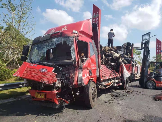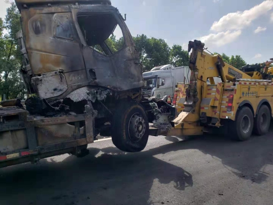 備勤的駕駛員毛慶榮顧不上刷牙洗臉,駕駛著大型救援車(chē)從臺(tái)州所出發(fā)。因?yàn)橛新樊a(chǎn)損失,當(dāng)晚住勤的值班人員王凱也駕駛著路產(chǎn)勘查車(chē)趕赴現(xiàn)場(chǎng)。