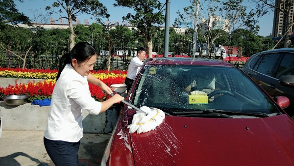 黨員服務群眾免費洗車 “等下車鑰匙拿給黨員同志,他們幫你免費洗車。”收費員張裴裴一上班就碰到這等好事。 11月6日上午,溫嶺西收費所黨支部組織黨員在所內開展了免費義務洗車活動,一個上午共清洗10多輛汽車,受到群眾員工的好評。