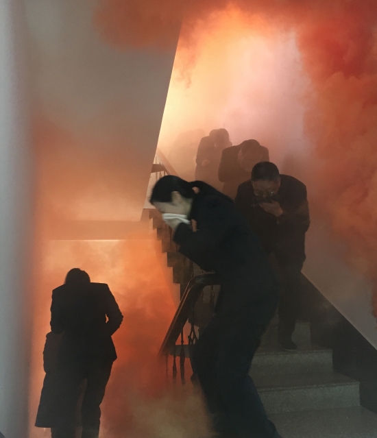 圖為樓道逃生演練 在樓道逃生演練中,大量煙霧彌漫,員工們熟練掌握逃生自救的要領:個個用濕毛巾捂住口鼻,彎腰、沿著樓道有序快速往下逃離。 大家在突發(fā)事件面前臨危不懼、配合默契,保證了其它車輛的有序通行。在面對突發(fā)火災,也能做到有序、快速撤離。通過演練,各崗位人員不僅增強了安全意識,也提高了對應急預案的熟悉程度和面對突發(fā)事件的反應、處置和自救能力。 夏蓮萍
