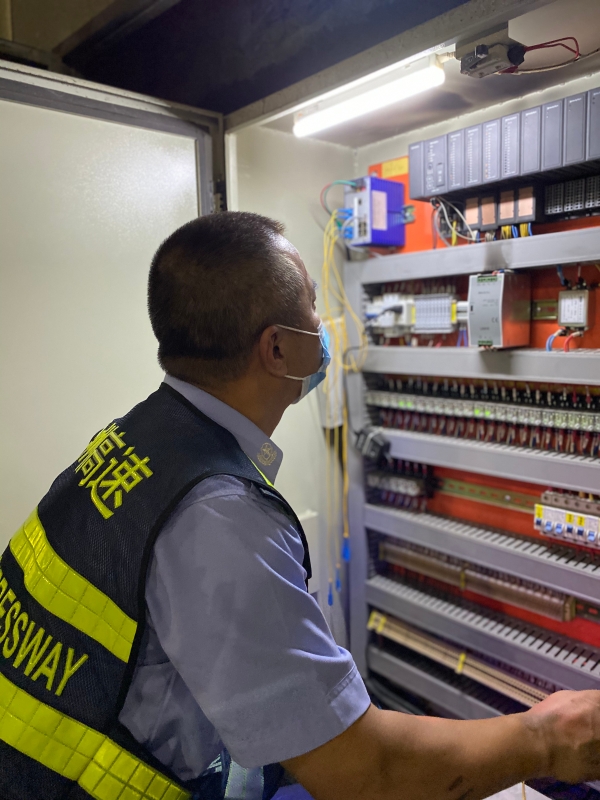 雖然隧道內(nèi)沒(méi)有烈日的灼燒,但日均4萬(wàn)的車流,加上尾氣排放,導(dǎo)致隧道內(nèi)的氣溫遠(yuǎn)高于室外。當(dāng)室外37°C時(shí),整個(gè)隧道里宛如一個(gè)蒸籠。盡管如此,廣場(chǎng)上、電纜溝上隨時(shí)都有執(zhí)勤隊(duì)員忙碌的身影。他們來(lái)回徒步穿梭于隧道,檢查指示燈、消防設(shè)備箱、緊急電話、火災(zāi)報(bào)警等設(shè)施設(shè)備,排查各類安全隱患,修復(fù)受損設(shè)備,處理各種突發(fā)情況。一趟下來(lái)臉和胳膊被熏得黝黑,口罩、衣服濕了又干、干了又濕,盡管工作量大、強(qiáng)度高,他們從不喊苦說(shuō)累。