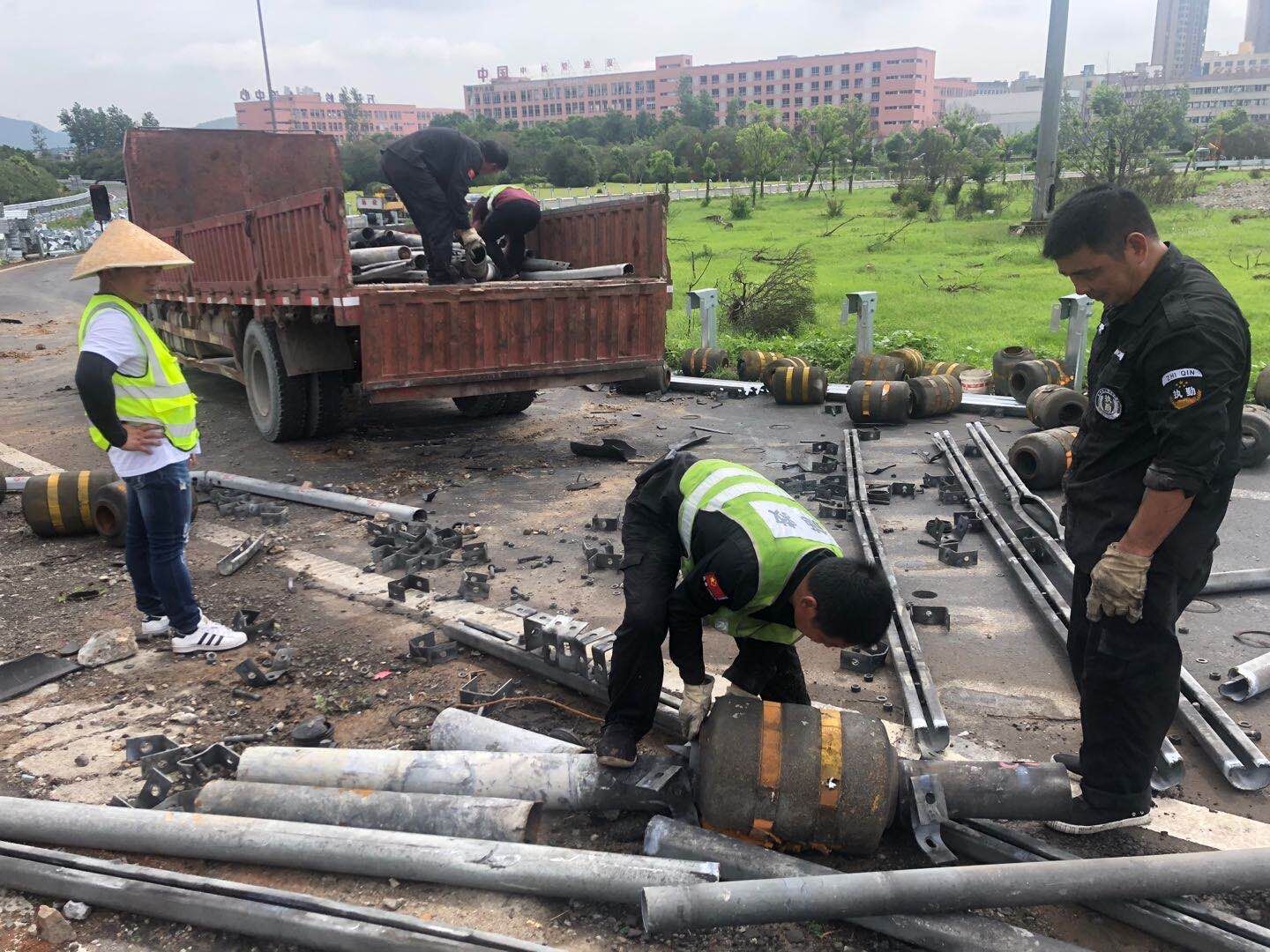 圖為各部門小組人員監(jiān)督現場 此次廢舊物資數量大,護欄板因高溫沖擊造成了強烈的扭曲變形,這無疑給裝載增加了難度。大家和裝載人員一起想辦法,以便更好地裝車安全抵達院橋磅秤站。盡管天氣燥熱、環(huán)境嘈雜,可絲毫未影響小組成員的工作熱情,因時間倉促,所有人利用午休時間加快工作進度,一直堅守現場。在趁車裝載間隙,兵分兩路,一隊現場盯裝車,另一隊由林軍帶領趕往塘嶺廣場、臺州收費所,對阻塊等廢舊物品進行勘察,隨后又馬不停蹄趕往院橋磅秤站匯合監(jiān)督過磅環(huán)節(jié)。 直至下午5點,大家終于結束工作。據統計,此次共處理廢棄物資約15噸。 毛譯聆