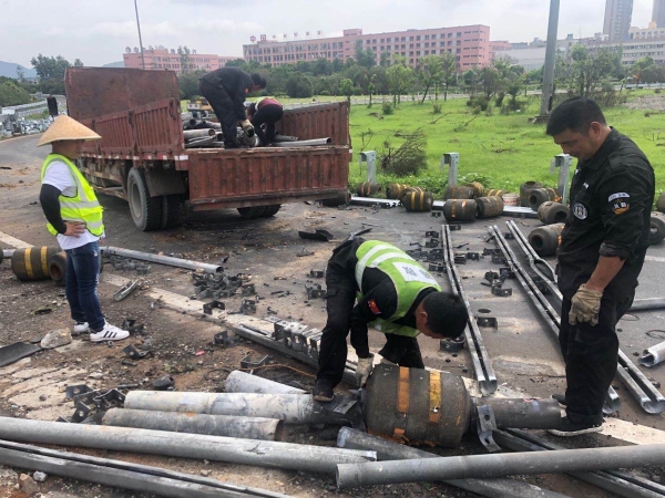公司多部門聯合處置廢舊物資 7月27日,為協助工程部開展6.13浙江溫嶺槽罐車爆炸事故受損路段維修,盡早恢復通行。資產管理部在本月第二次聯合工程部、計財部、監(jiān)察室對公司路損防撞護欄板及立柱等廢舊物資進行處置。