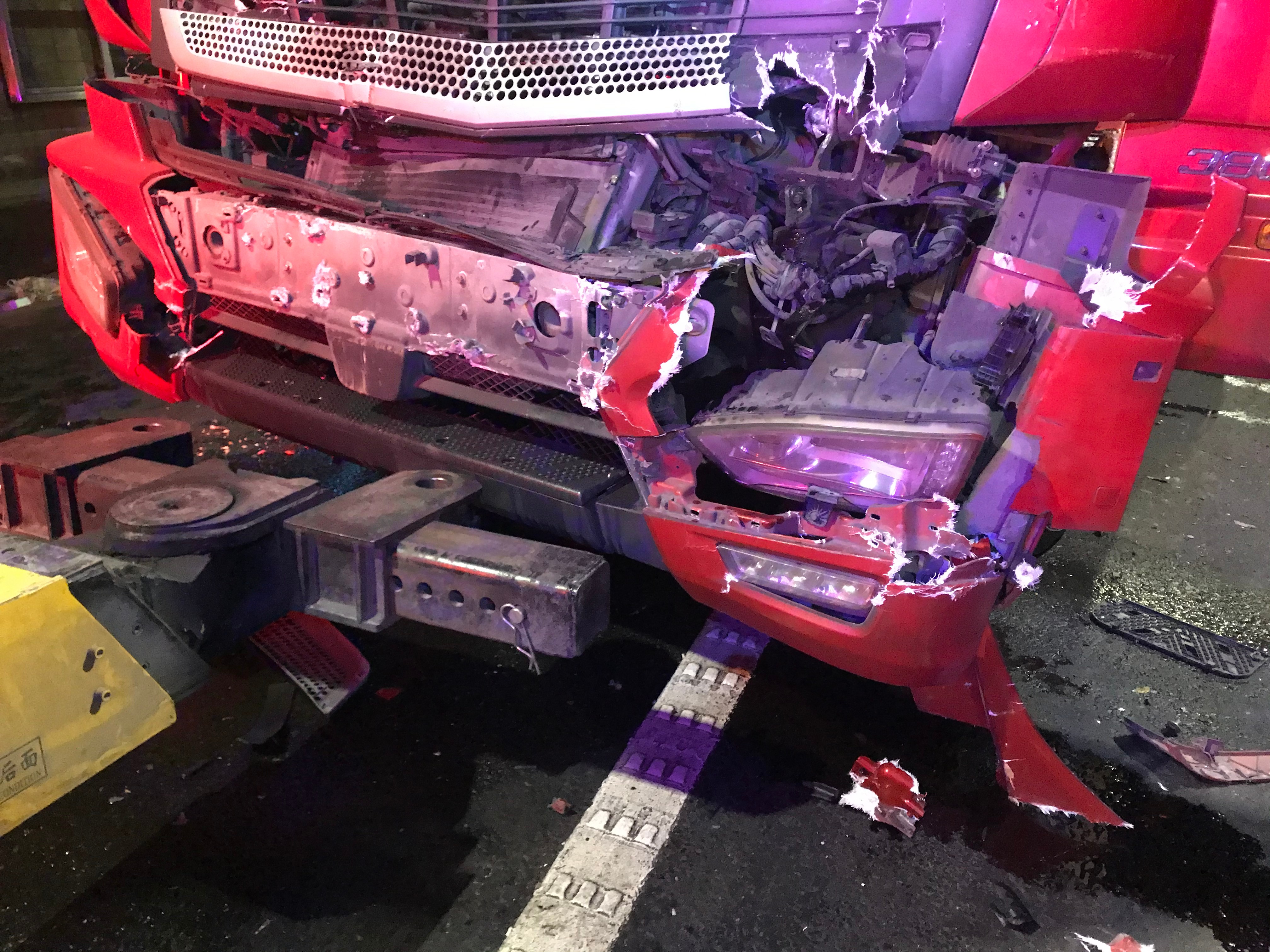 1月14日晚21:30分,甬臺(tái)溫高速寧波方向距離臺(tái)州南收費(fèi)站約5公里的路段,一輛半掛車與一輛小轎車發(fā)生碰撞,現(xiàn)場(chǎng)急需一大一小兩輛拖車。