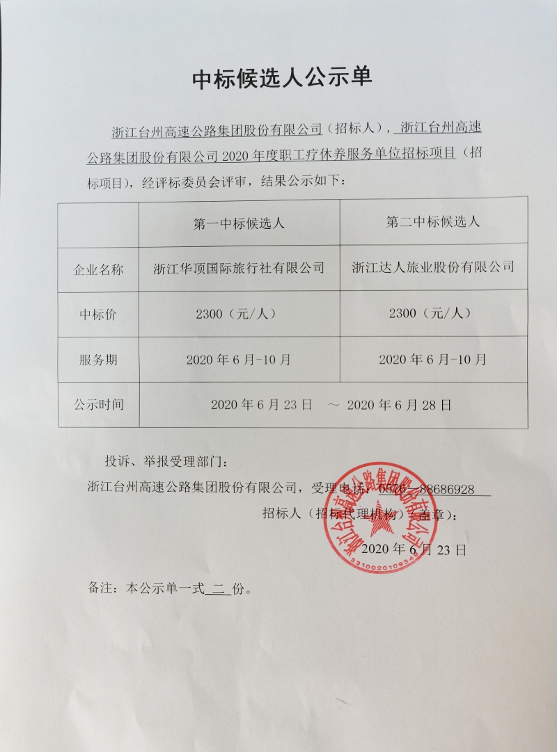 2020年度職工療休養(yǎng)服務(wù)單位招標(biāo)項(xiàng)目中標(biāo)候選人公示單