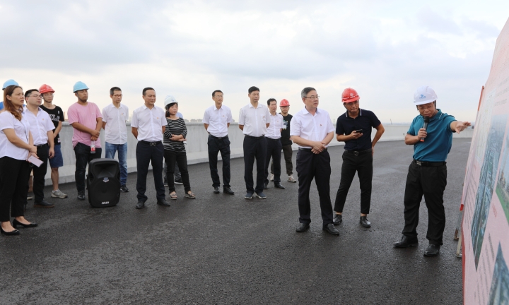 一行人先后來到路澤太三標(橋上架橋)、路澤太二標(機場樞紐)現場進行實地參觀,在現場聽取了路澤太人員的情況介紹,感受到了路澤太快速路的恢弘氣勢,并為作業人員們熱火朝天的干事氛圍所感染。現場人員對路澤太公司只爭朝夕搶進度、精益求精重質量、全力以赴保通車的責任感和使命感表示高度贊賞。