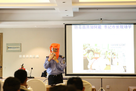 圖為教員現場示范防煙面具的使用方法 此次培訓特邀了臺州安居防火技術有限公司的教員開展消防安全知識講座。培訓中,教員通過播放真實的火災視頻,結合近期全國及本市發生的多起火災事故案例,深入淺出地講解了火災發生的原因和危害、安全逃生方式、常用消防工具的使用方法以及防火注意事項等內容。隨后,教員就如何正確地使用滅火器、防煙面具等消防用具進行了現場操作示范,并耐心解答了大家在日常生活工作中遇到的消防安全疑問。 培訓結束后,參訓人員紛紛表示消防知識培訓是堂必修課,不僅進一步認識到火災不留情、火災可防范的道理,還加深了對消防安全知識的了解掌握。今后,市政公司將常態化開展此類活動,切實提高全員消防安全自防自救能力,做到居安思危,思則有備,有備無患。 張琛